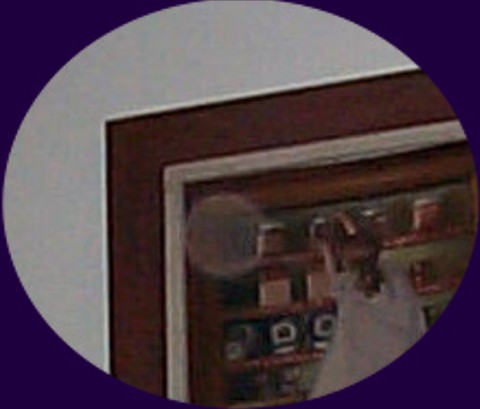 The circle in the corner is not in the painting. You can actually see the transparancy of the orb.